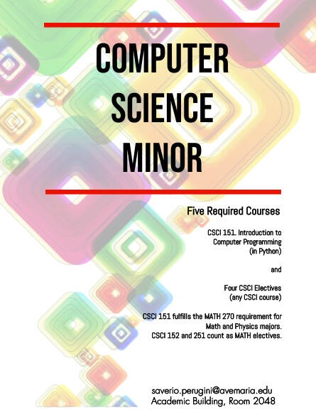 The computer science minor consists of CSCI 151. Introduction to Computer Programming and any four other CSCI courses.